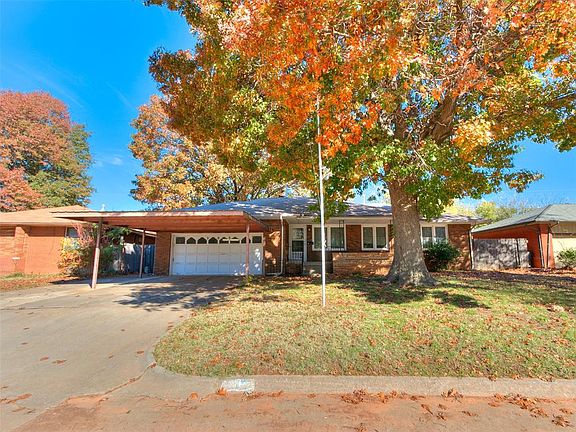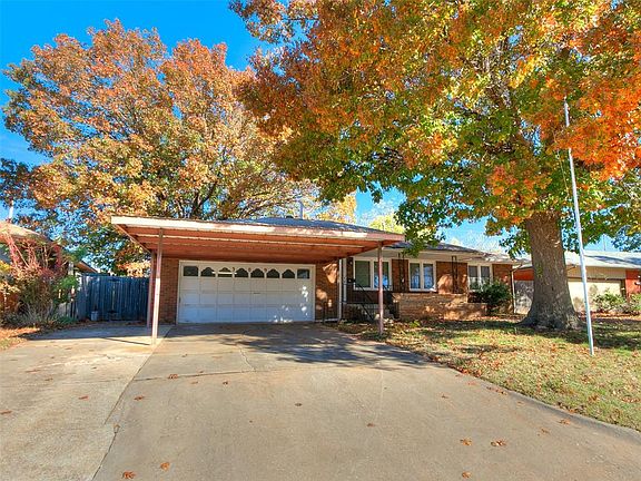 This charming and comfortable home checks all the boxes on your list. It is surrounded by huge oak trees in the front and back yards and combines traditional and mid-century designs. The location is convenient to I-40, Tinker AFB and is tucked into a nice, quiet neighborhood in the middle of Midwest City. With 3 bedrooms, 2 baths, 2 car garage and full carport, it is further complimented by a large covered front porch and a massive back deck to match the massive, fenced backyard. The driveway is also extended for extra parking space. The living room and bedrooms feature original oak floors and the kitchen is large and open with a classical tile floor. Located off the Primary Bedroom is a huge built-in safe room which provides a multitude of possible uses. If you are dreaming of a home to meet all of your needs with comfort, location, style and priced to sell, don't miss this perfect opportunity.