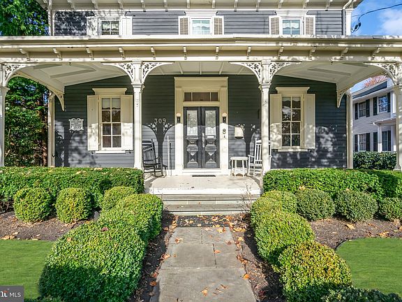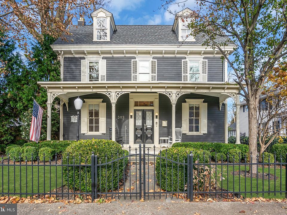 Location, location, location! Nestled in the heart of downtown Moorestown, this charming 5-bedroom, 2-bathroom Victorian-style home offers a perfect blend of historic elegance and modern convenience. Situated on a generously sized quarter + acre lot, this meticulously cared-for property features a beautifully maintained exterior and an expansive rear yard — ideal for outdoor gatherings and family fun. As you arrive at this picturesque home, you’ll immediately notice the stunning front porch, perfect for enjoying the outdoors. Step through the double-entry doors into a bright and welcoming foyer, where the beautifully refinished original hardwood floors and staircase create a sense of warmth and character. To the right, you’ll find the living room, which offers scenic views of Main Street and lush greenery. On the left, a cozy formal sitting room awaits, ideal for relaxation or quiet conversation. Moving down the hall, you’ll be drawn into the expansive dining room, perfect for hosting family dinners and gatherings. A bonus bar or pantry area adds practicality and flair. The dining room also provides access to a second porch area that leads out to the side yard — a wonderful space for morning coffee or evening relaxation. At the rear of the home, the retro-style kitchen boasts ample cabinet space, a large pantry, and views of the picturesque backyard. The kitchen is also conveniently located next to a full bathroom, completing the main level’s functional flow. Upstairs, you’ll find three generously-sized bedrooms bathed in natural light, along with a full bathroom featuring a tub/shower combination. Whether you use these rooms for sleeping, working, or crafting, there’s plenty of space for all your needs. The third floor offers two additional matching bedrooms, making this space perfect for children, guests, or an additional playroom. The two car detached garage offers plenty of room for two large vehicles plus additional storage space. Above the garage there is a bonus room that would be a perfect home office, play room or additional living area. This flexible space adds tremendous value and utility to this already impressive home. For even more storage you have the basement of the property where you'll also find your laundry area. The expansive grounds of this property are meticulously maintained and offer various outdoor living areas, including multiple decks and porches. The large rear yard is an entertainer’s dream, offering plenty of room for family events, gardening, or simply enjoying the fresh air. This exceptional home is ideally situated just moments from the vibrant downtown Moorestown area, offering a variety of shops, restaurants, and entertainment options. With easy access to Philadelphia and New York City, you’ll enjoy the best of both suburban charm and city convenience. Whether you’re seeking a comfortable family home or a stylish retreat, 309 W Main St is a true gem that combines history, character, and modern amenities. Don’t miss the chance to make this enchanting Moorestown home yours!