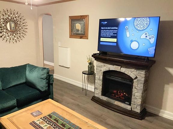 309 W Robinson St, this fully furnished home with all utilities and 1GB WiFi included, will amaze you with its charm. Located in the west side historic district you are less than a 2 block walk to all downtown Carson has to offer. This one bedroom, one bathroom, executive duplex rental was renovated in 2020. It features a full kitchen with quartz counters, updated stainless refrigerator, electric stove and original 1940's farmhouse sink. The kitchen also includes microwave, coffee maker, dishes, utensils, cookware, bakeware and more. The kitchen and breakfast bar open to a warm and spacious living room. The living room is furnished with large sectional sleeper sofa, oak coffee table, electric fireplace, ceiling fan, large smart TV, and rustic cabin decor. The master bedroom is furnished with a Tempur-Pedic king size bed, dresser, smart tv, ceiling fan, and a spacious closet. The bathroom features a new single sink vanity with storage, claw foot tub, cozy stall shower, and roomy hall linen closet. Laundry room available onsite. Located just 2 blocks from the Governor's Mansion, Downtown Carson, shopping, restaurants, bars, shops, casinos, a short walk to Bordewich Bray Elementary School, Carson Community Center, library, the Nevada State Capitol Complex and more. Owners are Nevada licensed real estate agents.