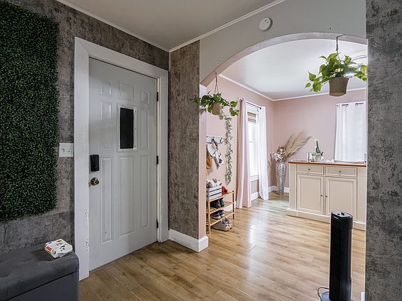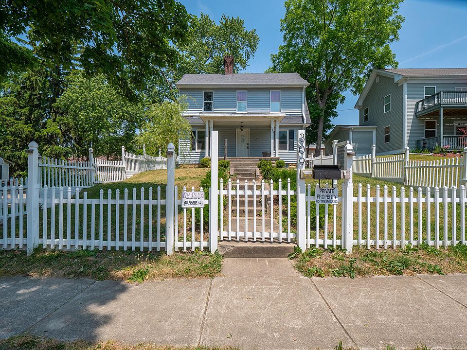 So much charm in this home with its unique architecture and original woodwork throughout and hardwood floors upstairs. Solid bones and so much potential, this home just needs a little sweat equity to really shine. Lots of windows and natural light, making it light and airy. A big fenced in corner lot make this home an ideal place for pets. Relax, entertain company, and enjoy being outdoors with three covered porches and a big deck with pergola that stays. The basement offers ample storage space and a walkout access through the garage making moving stuff in and out a breeze. Prime location with restaurants, shopping, bars, and DePauw University just within a 10-15 minute walk.