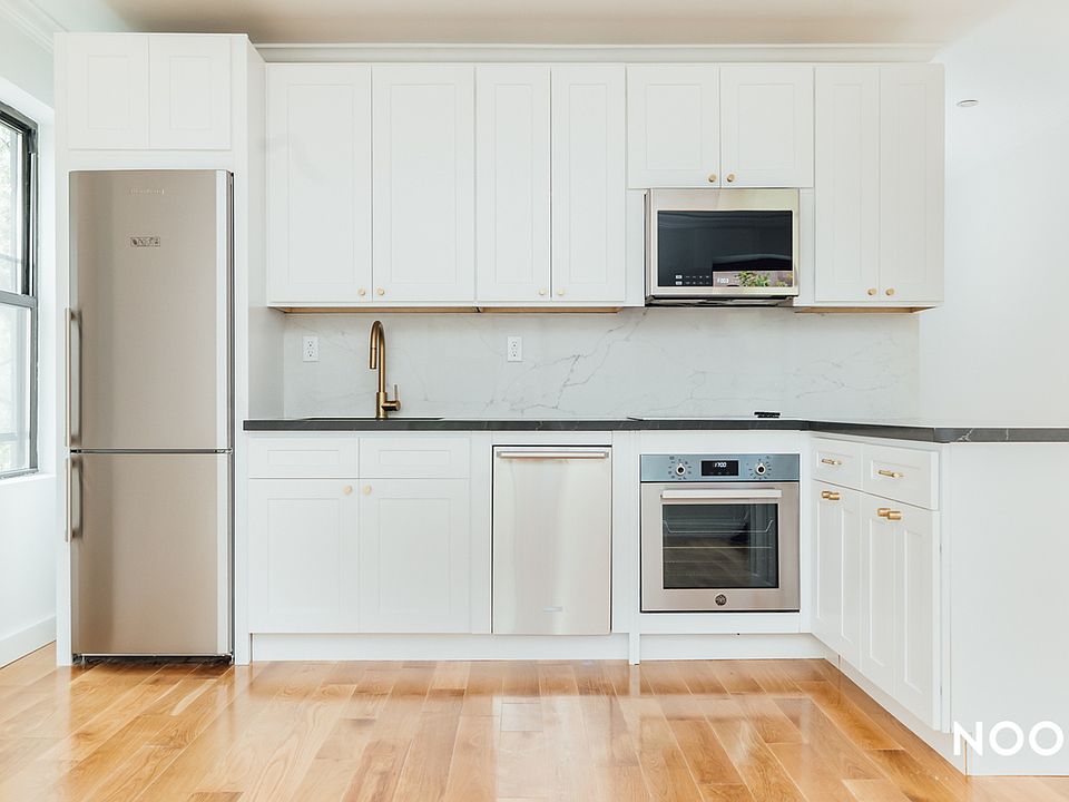 Absolute must see! Brand new, stunning and sun drenched 2 bedroom, 2 full bathroom with condo quality finishes throughout. In-unit laundry, large open-concept kitchen with top of the line appliances, and windows everywhere. **No fee and heat & hot water are included in the rent. RENT STABILIZED at $4688 with very large rent credits making the average cost $3125.** 2 year lease available. Keyless entry. Rhino deposit-free and guarantor service accepted. Enjoy living on this tree-lined block in Clinton Hill near tons of great restaurants, shopping, the G, Pratt Institute, and more.