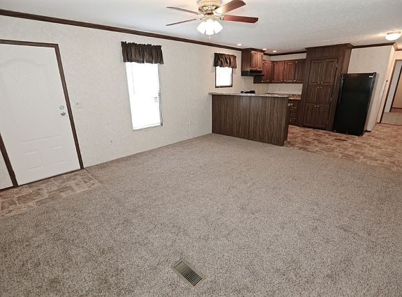 This brand new 2016 model Lexington 16' x 80' home with three bedrooms and two bathrooms is move-in-ready! The interior features vinyl planks throughout while carpet covers the bedrooms. The kitchen features plenty of counter space for food preparation along with a counter bar. Complete with a refrigerator, cooktop/oven, and dishwasher, this kitchen is ready for use. Also, a hidden door in the kitchen leads to a large laundry/storage room. The master bedroom features a master bathroom with separate bathtub and shower. Adjacent to the living room are two generously sized bedrooms that share a full bathroom. Call today for your private tour.