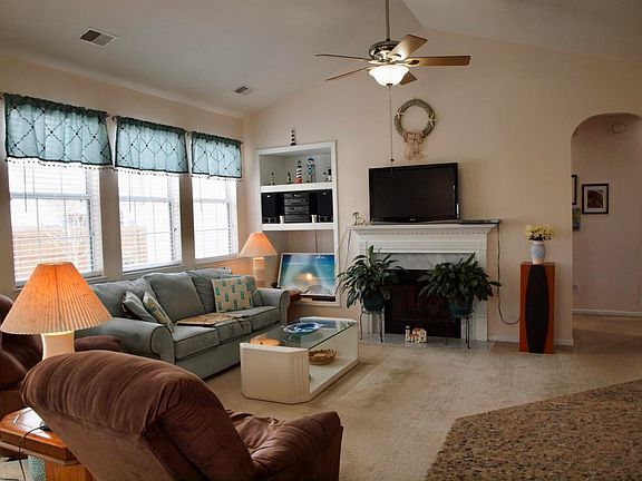Beautiful home located on a quiet cul-de-sac. Spacious, open floor plan with vaulted ceilings and wood-burning fireplace. Granite countertops in kitchen! Master suite includes jetted garden tub and separate shower. 2 other bedroom (or office/den) spaces share a large 2nd. bath. Enjoy evenings on the large, screened patio just off the living area. Great yard with privacy fencing make this a family paradise, just a short walk to the rec center to enjoy the pool, playground, lighted tennis courts, or one of many programs offered. Turn key home!