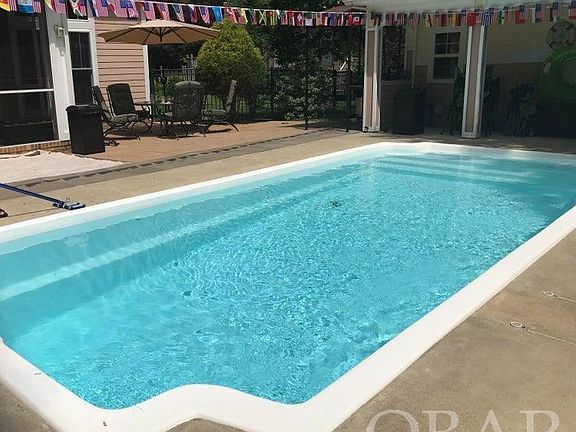 Beautiful Custom Loft style home in a waterfront community! Balcony porches in the front of the home set this home apart. Open floor plan with vaulted ceiling. Fenced back yard includes the saltwater inground pool and composite decking. 3 large screened porches for the outdoor relaxation for sunrises and sunsets. First floor primary w/en suite. Large laundry room boasting of custom cabinets. Kitchen is a gourmet delight featuring a gas range, solid surface counters & breakfast bar. Large secondary bedrooms upstairs. Rinnai natural gas water Screened upper and lower front porches, interior painted, with hardwood floors in main and bedrooms, all other areas are tiled, just to name a few perks! The exterior wall studding is 2'' x 6'' stud upgrade.No flood ins needed! HOA is voluntary an includes beach, park and boat ramp. Fantastic location with easy access to Virginia, Outer Banks and Elizabeth City. Great schools and a fantastic community. Call to see today!