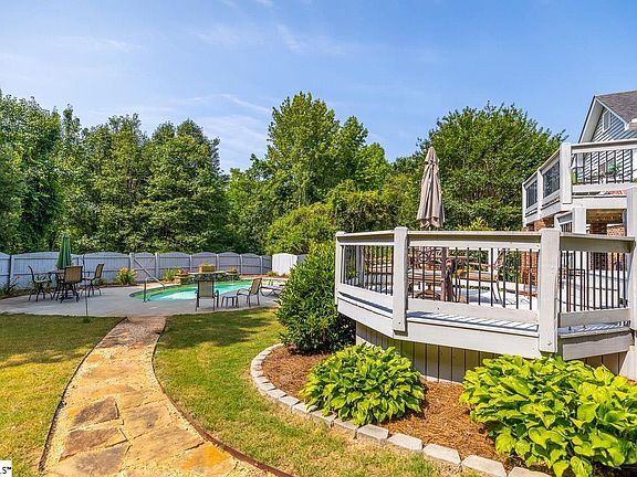 **OPEN HOUSE THURSDAY JULY 6TH 4-6 pm** Location, location, LOCATION!! Three bedroom, two bathroom home located in a quiet neighborhood in Simpsonville, SC - you are MINUTES away from Woodruff Road, Downtown Greenville, and Downtown Simpsonville offering ample options for dining, shopping, and other fun activities! Also conveniently located near major highways, hospitals, public parks, and MORE! You won't want to miss out on seeing this home for yourself. Walk through the front door and find the formal dining room on your right with a gorgeous chandelier. Walk straight into the open living space boasting tall vaulted ceilings, a wood burning fireplace, and tons of natural light! To your right you will find the gorgeous kitchen featuring white cabinetry, granite countertops, TONS of counter/cabinet space for all of your kitchen needs, stainless steel appliances, and enough space for a breakfast table! Find your secondary bedrooms on the left side of the home and the master ensuite on the right. The spacious master bedroom features trey ceilings, gorgeous full bathroom with double vanity, garden tub, shower, and walk in closet. Laundry room is conveniently located next to the master. Now to the backyard...Enjoy these warm summer months out by the beautiful pool featuring a waterfall fountain!! Fenced in backyard, a three tiered deck - offering tons of space for entertaining, a covered patio, and plenty of yard space! This home has SO much to offer!! Schedule your showing TODAY!!