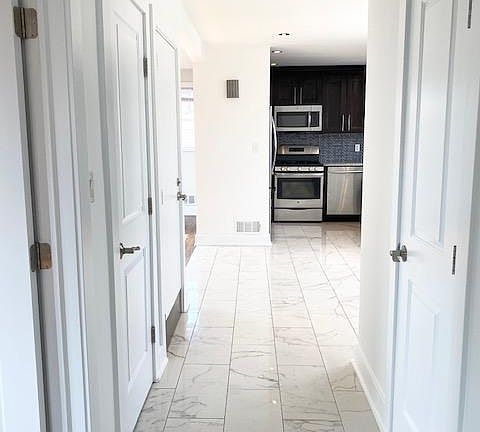Beautiful 2nd-floor apartment. Open concept with large living room. Modern eat-in kitchen with granite countertops, SS appliance, and ceramic tile flooring. The dining area leads to a balcony. Two bedrooms, hardwood floors, extra space in the hallway for coats and shoes. The apartment is freshly painted. Washer and dryer in the basement.Parking space for two cars outside. Hot Air and Central A/C. Close to all major highways. 10min. from Hackensack University Medical Center. 1-month security required and 1-month real estate fee is due at lease signing as well as rental application with a credit report, proof of income, and tenant interview required. Renters are responsible for heat, gas and electricity. Cold water included Tenant responsible for snow removal on their parking spot.