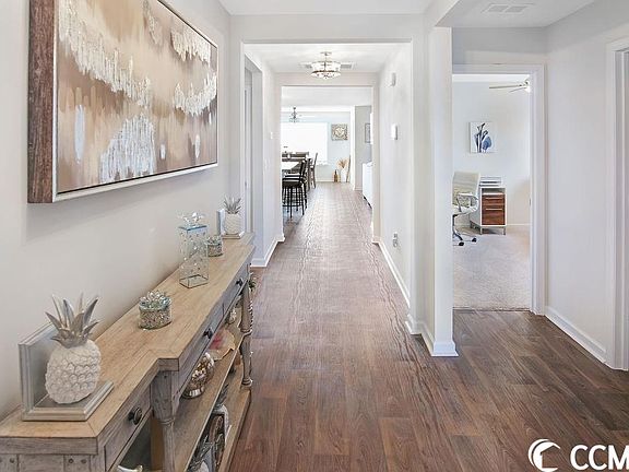 So many upgrades in this 3 bed/2 bath Home situated on a premium Pond lot in the Woodland Farms Community an Aynor school district.  Receive a warm Welcome when you step into this custom lit entryway, you'll find  2 bedrooms with newly added ceiling fans & plantation blinds along w/ neutral carpeting and a full bath with updated vanity & shower lighting. This home features a large open concept main living/kitchen/dining area which has a lot of natural light & a Pond view. Along with stylish lighting over the Granite kitchen island, added tile backsplash, hardware on all the cabinetry, and large pantry closet. This space is perfect for entertaining!! Off the Dining area is a newly added Screen room to enjoy your morning coffee or an evening sunset.  The Master Bedroom boasts a Large walk-in closet with a Master Bath which includes double sink vanity w/ upgraded lighting and a large walk in shower. This home has been Meticulously maintained and is Better than New w/ many upgraded additions such as landscaping, window screens, screened porch, gutters, all custom light fixtures & ceiling fans in every room, custom vanity lights in both bathrooms, light installed over guest shower, pulls & handles added to All cabinetry, tile backsplash in kitchen.  Come enjoy all this home has to offer and the easy access to Hwy 22 for a quick Beach trip whenever you want!!!