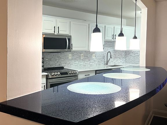 Welcome to the largest 2b/2ba condo at Watergate! This updated condo offers ebony black flooring with complementary matte black finishes. Peek across a custom, blue glass countertop into the kitchen featuring stainless steel, smart appliances. Access the 30-foot balcony from the living room and each bedroom.