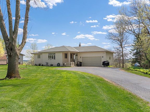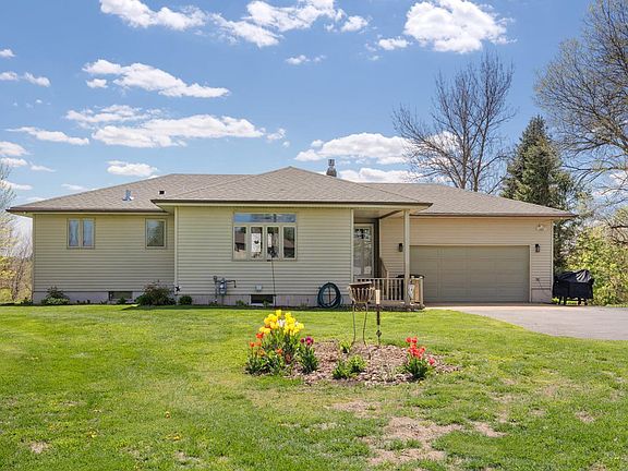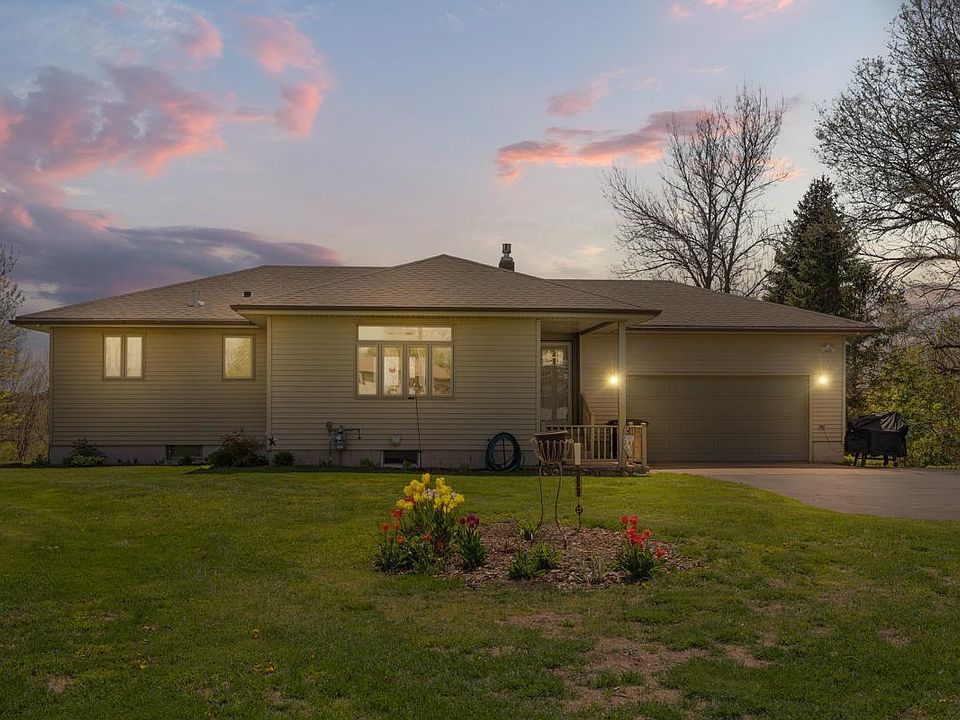 Welcome to this charming walk-out rambler, nestled on a generous 1.12-acre lot. Inside, you'll find a well-maintained home featuring a spacious kitchen with new countertops and backsplash. The living room, conveniently adjacent to the kitchen, offers ample space and boasts a large window overlooking the beautiful backyard. Two bedrooms and a fully remodeled bathroom complete the main level. Downstairs, there's a third bedroom, a fourth room that could be converted into a bedroom with an egress window, a family room with a gas fireplace and walkout access, laundry room, and a versatile bonus room. The property includes a double attached finished, heated garage and a 24x26 detached garage/shed. Updates include new carpet, paint, light fixtures, blinds, exterior doors, and more. Come check out this beautiful property in person!