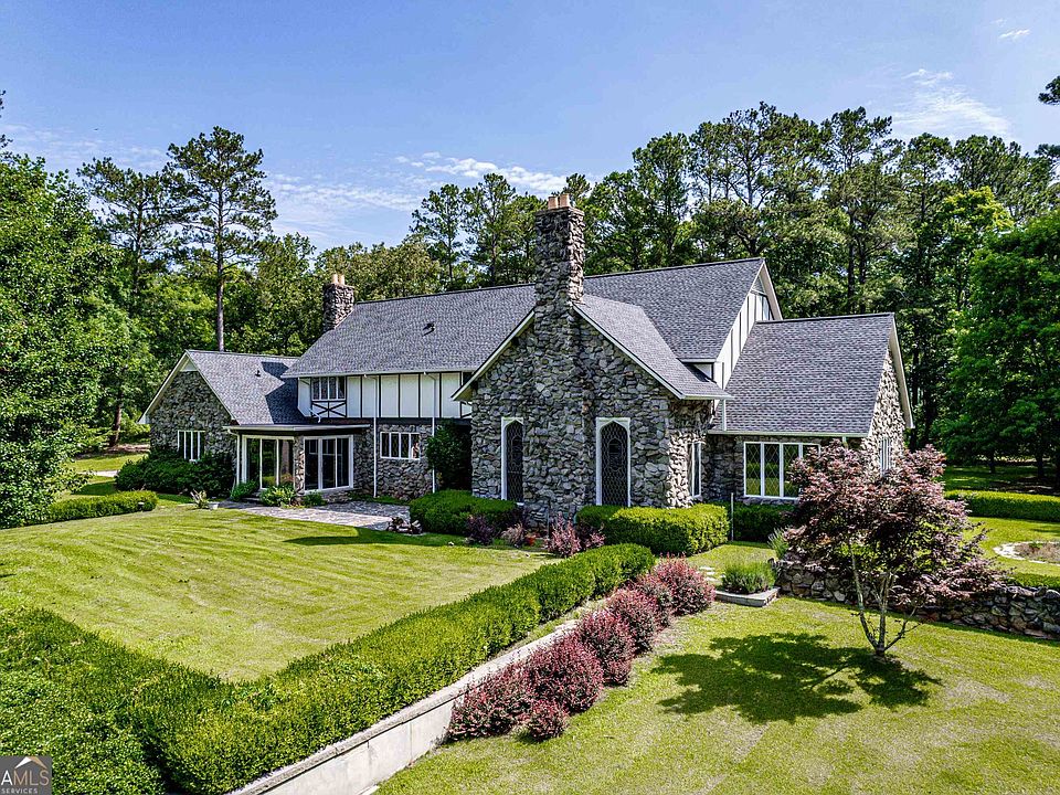 Step into a world where timeless elegance and old-world charm meet modern comfort. Greystone is a breathtaking 5,500 square foot Tudor-style manor set amid 73 acres of pristine, rolling countryside. A rare fusion of architectural grandeur and natural beauty, this extraordinary estate is perfectly suited for refined living, outdoor recreation, and legacy ownership. As you pass through the gates, a sense of serenity and seclusion welcomes you. Manicured trails weave through wooded groves and fenced pastures, ideal for peaceful walks, trail rides, or ATV exploration. At the heart of the property lies a stunning four-acre, spring-fed pond fully stocked and framed by vibrant foliage. This serene waterscape offers year-round enjoyment, from casting a fishing line to watching the seasons reflect in the still waters. Greystone is thoughtfully equipped for equestrian and outdoor lifestyles, featuring a two-stall horse barn, fenced paddock, and a private outdoor range suited for pistol, rifle, and archery use. The land is rich with wildlife including deer and wild turkeys, providing excellent opportunities for hunting or observing nature in its purest form. The manor home itself is a showcase of craftsmanship and design, constructed with lasting materials including grey feather rock and rare imported English stone. The castle-like facade recently enhanced with a brand-new roof, evokes storybook charm and stands as a testament to enduring quality. Inside, the homes sophistication is immediately apparent. Rich walnut-paneled walls lend an air of tradition rarely seen in modern construction. Gleaming parquet floors stretch across grand spaces, while a magnificent U-shaped staircase unites the lower level with the upper bedroom wing. Thoughtful architectural details such as antique fixtures, intricate woodwork, and leaded-glass doors are found throughout. The great room, with its soaring cathedral ceilings, massive wood-burning fireplace, and two oversized stained-glass windows, creates a breathtaking centerpiece for gathering and entertaining. Adjacent is a cozy family room with a gas-burning fireplace, which opens to a light-filled sunroom perfect for relaxing through every season. French doors lead to an expansive slate patio and grassy terrace, where you can dine alfresco, entertain guests, or simply take in the panoramic views of the pond, gardens, and surrounding woodlands. From every window and outdoor space, nature provides a spectacular backdrop. The luxurious