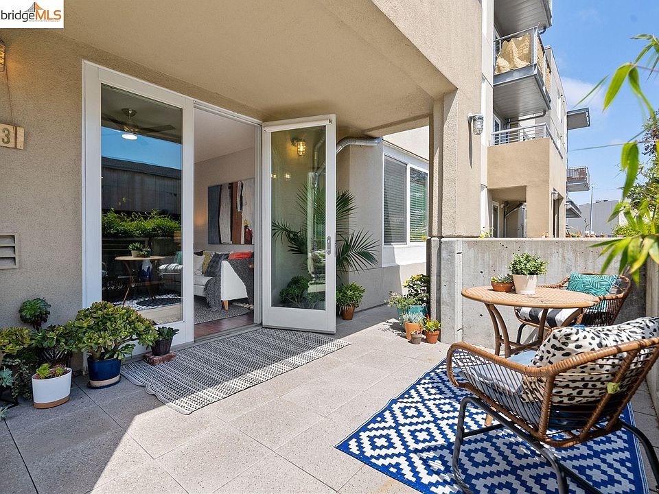 Located among the art studios, galleries and quirky spaces of Jingletown, this rarely available unit is one of only a handful in the Harborwalk complex featuring it's very own private terrace with private entrance from the street giving you real townhouse living vibes. A gate and a single flight of stairs lead you from Glascock street up to the aforementioned huge greenery filled private terrace and right to your front door! This spacious 2+ bedroom 2 bath floorplan also gives you the great benefit and square footage of that "+" room that can be whatever you want it to be! Other features include an open plan kitchen/living room/bonus room area, in unit laundry, and a large primary bedroom suite with walk in closet. The unit also comes with one below grade parking space equipped with EV charging station. Some upgraded finishes include engineered hardwood floors, slate tile, and recently installed carpet in the bedrooms. Located just one block off of the estuary/waterfront, you'll enjoy quick access to the vast network of trails and parks that run along it...and just across that estuary, the heart of Alameda's Park street business district is only about 1 mile away! You will also have convenient access to I-880, Fruitvale Station shopping, Fruitvale business district, and BART.