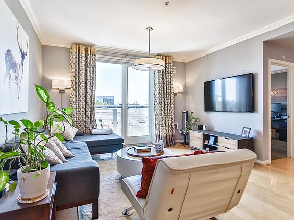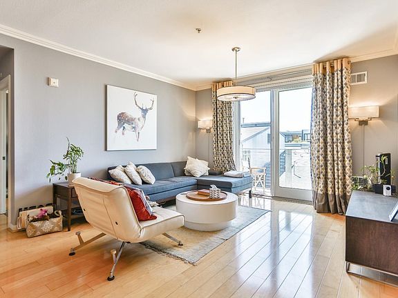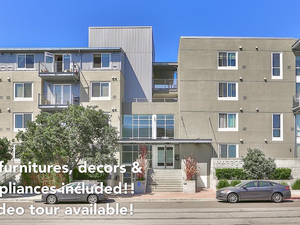 FHA Approved! Like a model home! Built in 2005, this contemporary 2B/2B unit is located in Jingletown, Oakland's Waterfront in the Harborwalk Complex. This home features an open concept floor plan, High-end fixtures & finishes throughout and views of Fruitvale and the Oakland hills beyond. Bedrooms and baths are on opposite sides of unit for maximum privacy. Stylish wall painting, bright wood flooring, and wool carpeting in bedrooms. In-unit stacked washer/dryer. This unit comes with TWO parking spaces. Complex offers a terrific work-out gymnasium. All furnitures, decors & appliances included in the sale! Walk or bike along the Tidal Canal or over the Fruitvale Bridge to services at Bridgeport Shopping Center in Alameda. Short walk to Fruitvale BART, services, and eateries. Mins away to I-880 and 16 mins to Alameda ferry station. HOA includes Water, trash, exterior insurance, gym, building maintenance and repair, landscaping.