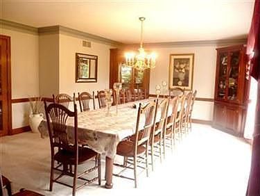Quality built all brick 5 bedroom 3 bath home with 8 car garage on 2.5 Acres. 4000 sq. ft. of living space plus a finished lower level. Huge formal dining room and living room with glass french doors. Gorgeous wood floors imported from Europe over $30,000. Corian countertops in kitchen with island cooking center. Family room with 2 walls of built-in bookcases and brick fireplace. 1st floor laundry. Additional outbuildings on the property for tools, gardening and smoke house. Relaxing deck, gazebo and fish pond.