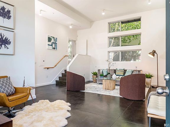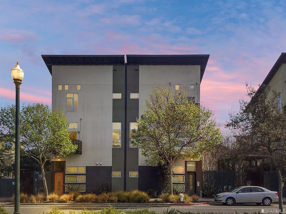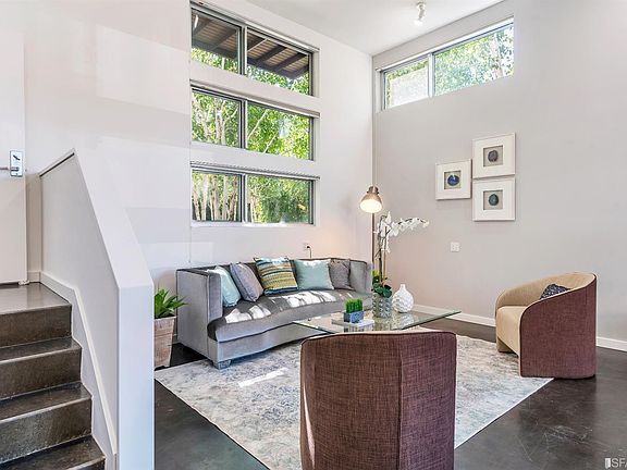 One of ninety-one townhomes, designed by famed David Baker Architects in West Oakland's Dogtown/Clawson neighborhood, this tri-level Live/Work END UNIT townhome sits prominently along Mandela Parkway in a gated community. Natural light fills this home! Entry Level: LIVE/WORK den+full bath. Soaring 13' ceilings, stylish concrete flooring, plenitude of windows and in unit laundry wrap up this level. Second level: Open concept living room, dining area w/balcony and modern kitchen w/ bamboo cabinetry, Bosch stainless appliances and dark stone countertops. Top level: 2 bedrooms welcomes light + air by windows on each side and access to the white tiled full bathroom and dark stone countertop double vanity. 1 parking space included. Don't miss!