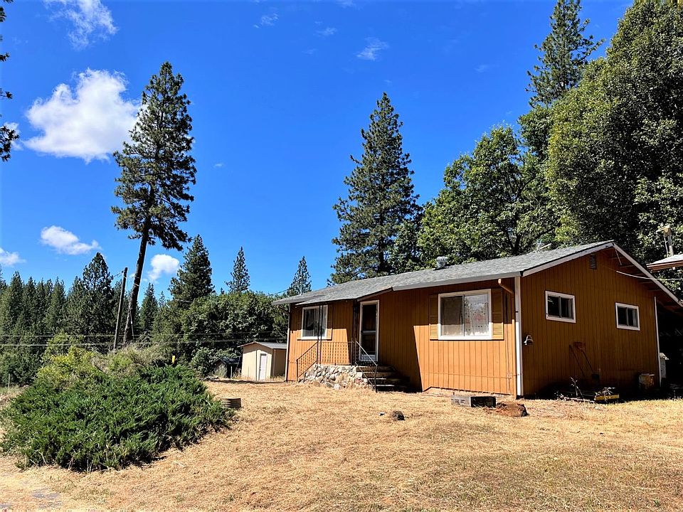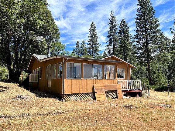 Foothill property with great potential. This comfortable 2 bedroom 1 bath home has an open floor plan and an attached Sun Room. The laundry room and half bath are located in the back porch area leading out to the detached garage. The 2 car garage has an attached workshop for those special projects or hobbies. The large 2 story barn has an subdivided room upstairs that is ready for your imagination. There are also numerous outbuildings for gardening equipment, playhouse or whatever you need. This property at one time was a U-Pick blueberry farm and some of the plants may have survived along with an apple or walnut tree and southern rabbit eye berries. Bring your green thumb and bring this gem back to life.