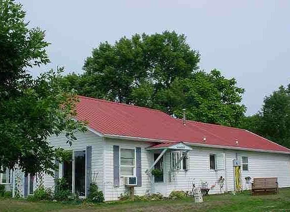 2 bedrooms, 2 bath home on slab foundation, 2x6 construction, insulated, newer windows, vinyl siding, metal roof, furnace. 22x30 corn crib, 16x60 shed, 32x48 pole barn. Included in sale - electric countertop stove, microwave, refrigerator, washer & dryer, water softener. House has no oven.