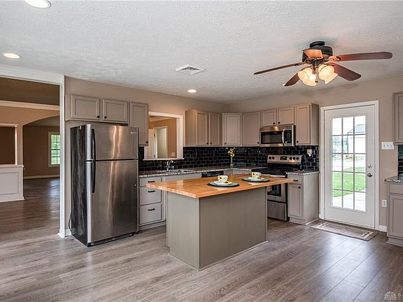 Feast your eyes on this stunning, freshly remodeled generational home! Two homes for the price of one! The 4 bed, 3 full bath spacious main home boasts an updated kitchen, a dining room to feed the masses, vaulted ceiling living room with a gas fireplace and a bedroom with a built-in loft. The 2nd floor features over 400 sq.ft. of additional living space. Inside the attached home are 2 bedrooms and an office, kitchen, living and laundry rooms with ADA accessibility and separate entrance. Updates include: fresh paint and flooring, updated cabinetry, fixtures, some exterior doors, subway tile, windows, granite and butcher block counters, garage door, 16x36 concrete patio and new(er) appliances. Step outside to find 2 barns: 32x54 and 24x36, one has a man-cave with bar area, party room and WBFP. Extra rooms for office potential. All this on 5 acres with a stocked pond and shelter house. One owner, family built this home and 6 others on this road. Don't let this be the one that got away!