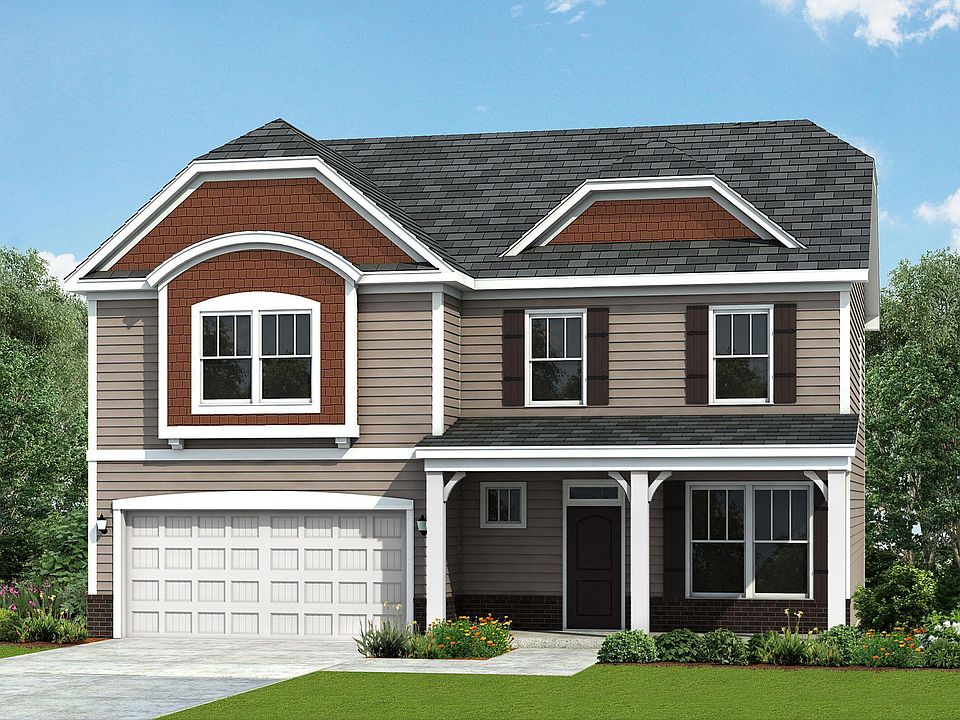 This Topsail Model has 4 bedrooms and 2.5 bathrooms. The home comes with the Standard Features of the Camellia Crossing Community. The kitchen comes with a trash rollout, lvl 2 hardware, quartz countertops, and a lvl 2 backsplash. The home has a covered porch and bed 4 ilo of loft. There is laminate in the powder room and a chase pipe over the mantle