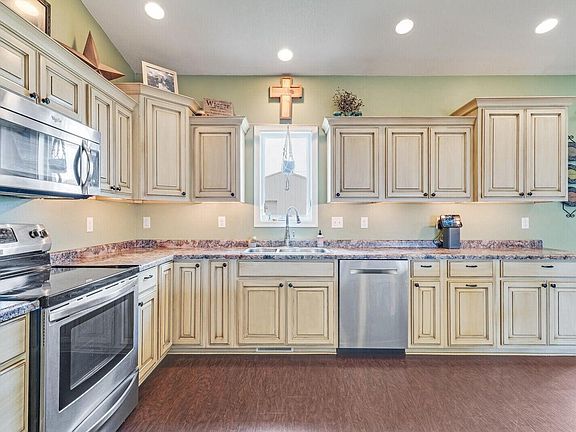 Contemporary ranch home located in that perfect country setting on 1.1 acres. 5-6 Bedrooms, 3 bathrooms and an attached 3.5 car garage. Open concept kitchen, dining room and living room. Beautiful kitchen with maple cabinets, made by the Amish, and a large island. Well thought out floor plan doesn't have any steps into the house. Master bedroom has a private bathroom, walk in closet and an attached nursery. Lower level has a modern industrial design with ground exposed concrete floors, 9 ft ceilings, a huge family room with a cozy fireplace, two more bedrooms, a full bathroom and tons of storage. Bonus---- 64 X 40 pole building, a steel roof and LP Smart Siding are a huge plus!