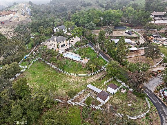 Welcome to a one-of-a-kind horse property located in the prestigious gated community of Hamilton Oaks—one of the few and finest ranch communities in all of Orange County. Behind the gates, you’ll find large acreage estates that offer the peaceful, rural feel of Fallbrook without the long drive—just minutes from shopping centers, schools, and the 241 toll road. Situated on approximately 5 oak-studded acres (230,868 square feet), this private, custom estate features a beautifully remodeled main home with over 3,100 square feet, offering 4 spacious bedrooms and 3 luxurious bathrooms. Inside, enjoy a brand-new kitchen with top-of-the-line appliances, new flooring throughout, updated bathrooms, and high-end custom touches in every room. The property also includes a detached oversized 3-car garage with a stylishly remodeled ADU/guest house above it featuring 2 bedrooms, 1 full bath, and a private entrance. Multiple view decks invite you to relax and take in the scenic beauty of the canyon and surrounding mature oak trees. One of the property’s standout features is its large, flat area—perfect for adding a riding arena, barn, or additional structures. If you're looking for a unique equestrian-friendly home with space to grow in a private, gated setting, this is a must-see. This quiet, secluded retreat is perfect for horse lovers, nature seekers, or anyone craving space and privacy with convenience close by. A rare opportunity in a truly special community—this is a must-see if canyon living is calling your name.
