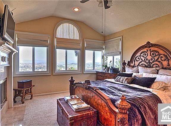 The Floorplan was expanded and remodeled to create a Beautiful Oversized Family/Great Style Room which opens to the Gourmet Remodeled Kitchen and with new Custom French doors to the View Yard. With over $200,000 in remodeling, words cannot describe the tasteful elegance of this pristine Belle Maison View Home with Custom Enlarged Floorplan and Extensive Upgrades. Expansion of the Formal Living Room added a grand piano sized 'Music Room.' In addition, the large Upper Loft was enclosed to create Bonus Room/Studio. Custom Crown and Baseboard Moldings, low e Double Ppane Windows, and Distressed Wood Floors were added. A recent Complete Master Bathroom Remodel included Beautiful Rich Cabinetry, Sinks, Tub, and Custom Stone throughout. Low Maintenance Backyard features a Custom Roughcut Stone Barbecue with Slab Granite Surfaces. The theme is carried throughout the lavish backyard with a View Seating Bar and raised dining area. Panoramic City Light,and Mountain Views.