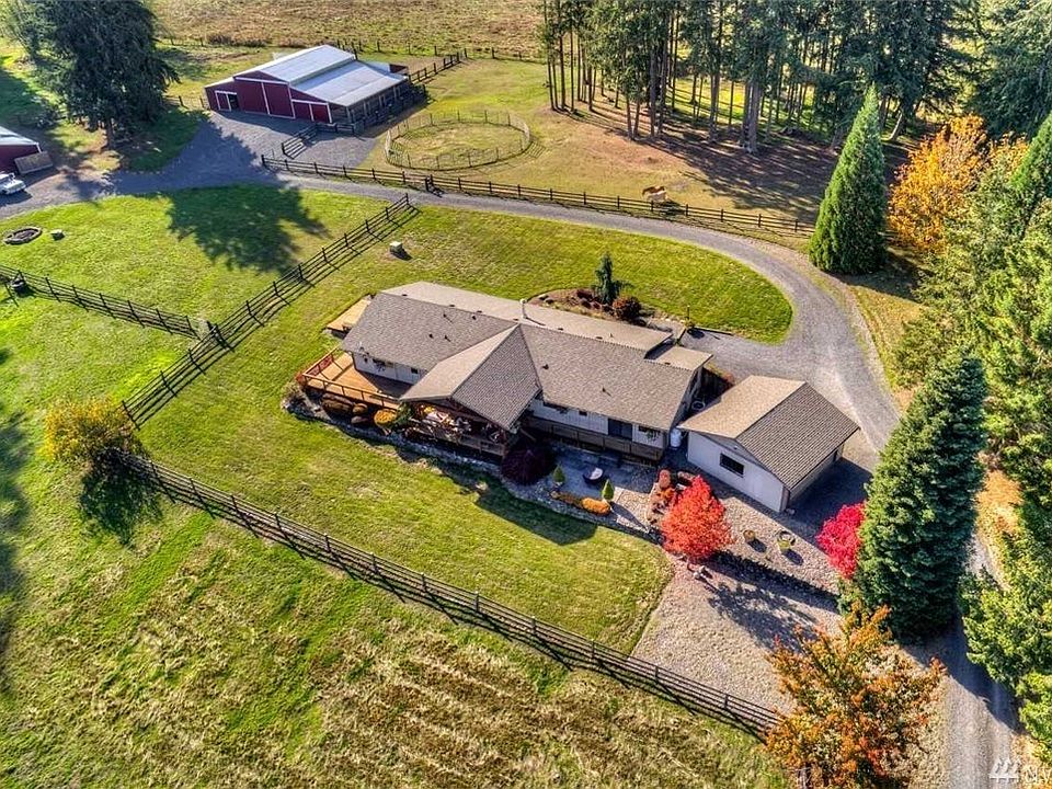 Horse property available in the Lacamas Valley area 10 minutes from East gate JBLM, 25 miles to Olympia. Permitted horseback riding on JBLM. Private drive off paved public road. Incredible Mt Rainier, territorial views. One story ranch well maintained quality updated home with hardwood, granite, tile, slate. Detached garage, Barn, heated and insulated shop. 5 cross fenced pastures entirely usable for year round grazing. Outside transit tax map area!