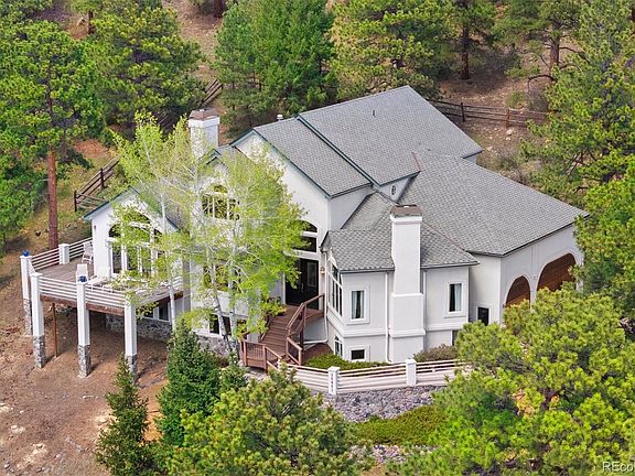 An extraordinary opportunity awaits the perfect buyer seeking Elevated Living...literally. Privately perched at the end of the cul-de-sac unveils a one-owner estate now being offered for the first time. Those seeking an amazing reprieve with truly exceptional views in a picturesque setting, step up! People from all over the country move to the quaint town of Evergreen for the Colorado lifestyle, great schools, conveniences, and nearby Denver Metro. Those who live here don’t want to leave. Buttermilk Court embodies all that is truly special about this neighborhood illustrating why we stay, just as these owners did. This mountain residence was mindfully designed to showcase the spectacular views of Bergen Peak, Southerly Vistas, Squaw Pass, and Elk Meadow from the front, while the back is nestled with adjoining tree-lined acreage of HOA open space creating seclusion and freedom for outdoor enthusiasts. The main level living spaces are drenched with sunlight from the floor-to-ceiling windows, vaulted ceilings, and picture-framed views throughout. A massive deck beckons al fresco dining or a simple moment of respite, as it envelops the open concept design to an enormous great room and kitchen. Grow old in this refuge with the highly sought-after Main Level Primary Suite with fireplace, huge walk-in closet, 5-piece bathroom, and private deck. Upstairs hosts two large bedrooms with ensuite baths, and walk-in closets. The light-filled downstairs level with soaring ceilings and huge windows finds another grand bedroom with an ensuite bath, storage, and living space for a recreational room, workout area, and pool table…or perhaps create a mother-in-law suite. Yes, all would lay out comfortably! Do not let yesterday’s classic, yet tasteful, finishes dissuade you from this quality, well-loved, and maintained mountain home. Its prime location, unprecedented views, and proximity to everyday conveniences present a unique opportunity for you to create the home of your dreams.