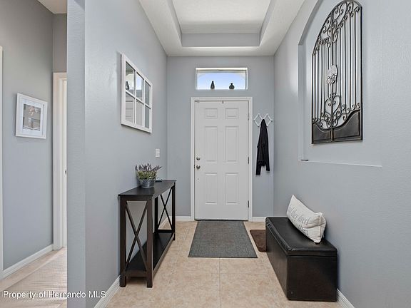 This breathtaking 3 bedroom 2 bathroom 2 car garage home offers 2,190 sq. ft (1,629 under air) of living space in the highly desirable golf community of Sherman Hills! Lush landscaping and natural beauty as this gorgeous home is located directly in front of the Withlacoochie State Forest. Enter through the front foyer and take note of the meticulously maintained living/dining room combo. Built in 2015, this home is practically brand NEW. Enjoy an open floor plan perfect for entertaining! The well laid out kitchen is a chef's dream...equipped with granite countertops, decorative backsplash, wood cabinets, and a window overlooking the Withlacoochie State Forest. The sophisticated owner's suite is light and bright and features an oversized walk-in closet. The master bathroom is the ultimate escape for your to relax and take off the day. Enjoy a large soaking tub, walk-in shower, and vanity. Generously sized guest bedrooms complete with a shared bath. Guest bath features a modern vanity and shower/tub combo. Indoor laundry room for your convenience. Head out back to your fully screened in lanai and enjoy peace and serenity or go for a hike from the comfort of your own backyard. Low HOA and NO CDD fee. Make Sherman Hills your full-time home or vacation getaway to escape the cold northern winters! A spectacular golf course isn't the only perk of living here. Enjoy a golf pro shop, community pool, clubhouse, fitness center, playground, tennis court, open green spaces, and so much more! Fence allowed per HOA.