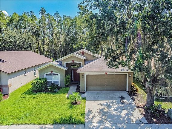 Check out this upgraded, newly remodeled 3 Bedroom 2 Bath with a good size Den. Home is located within the desirable gated village at Meadow Pointe neighborhood having highly coveted school zone within close proximity. New interior Paint throughout the house including garage, with new epoxy floor coating in garage done recently in 2020. Installed new flooring and tiles throughout house recently in 2020. Replaced new water heater recently in 2020. No carpet at all in this house. Over sized Master Bedroom with large Walk-In Closet, Double Sink master bath, bath tub and standing shower. Two other bedrooms are located opposite from the master bedroom and are serviced by the upgraded secondary bath. The Great Room has vaulted ceilings, having good space for multiple furniture arrangements and sliding glass doors leading to the 28 X 10 covered and screened Lanai offering plenty of space for lounging while enjoying the privacy of the fully fenced rear lawn. Conservation in the front and back side of the house. The Kitchen has ample counter top space, dining area and having gas cooking stove. This beautiful home is about a mile from the Meadow Pointe II clubhouse with access to the workout room, community pool, basketball, tennis and volleyball courts. Conveniently located within the Heart of Wesley Chapel, close to I-75 & I-275, Tampa Premium Outlets, The Shoppes At Wire-grass, State College, Center Ice, Florida Hospital along with multiple restaurants and entertainments.
