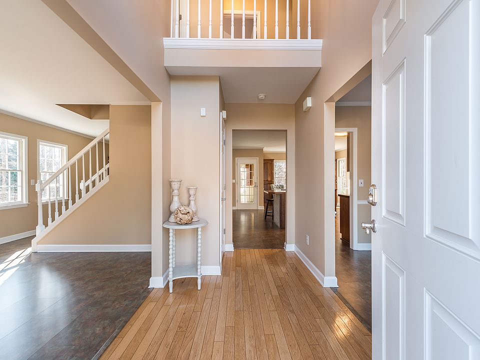- Interior: Foyer - Entrance, Cable TV Connections, Double Vanity, Pulldown Attic Stairs, Walk-in Closet, Bookcases, Tile Bath, Ceilings - Trey, Tile Floors, Foyer - 2 Story