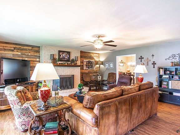 This beautiful, well maintained home is a must see. The curb appeal will greet you with a beautiful lawn accented with mature trees. This property features three bedrooms and 2 baths. The family room offers a large, picture window that allows for lots of natural light. You will immediately notice the brick surround fireplace flanked by shiplap on either side. The kitchen/dining area overlooks a large backyard. Located right off the kitchen is a nice sized utility room that is currently being used as an office/craft room. Enjoy morning coffee on the covered patio. There is also an open patio for grilling and outdoor dining. Located minutes from Tyler's newest mall, this home offers a country feel yet is close to shopping, restaurants and entertainment. Updates include new windows in 2011 and new HVAC installed 5/2/2019. Don't miss your opportunity to view this lovely home! Call today for your appointment.