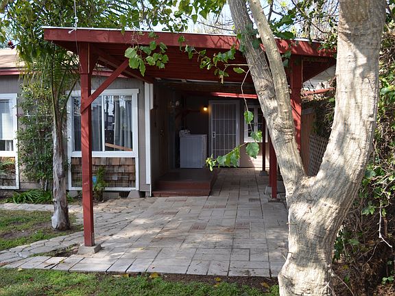 2 Bedroom 1 Bath House with Fenced Yard and Off Street Parking Updated Inside and Out! Newly Painted Exterior with New Patio. Newer Roof Grass, Palm Trees, Room to Garden with Sprinklers Newly Done in last 3 Years From Ceiling To Floor Inside. Crown Molding and Baseboards. Designer Coffee Maple Kitchen Cabinets with New Counter Tops Refrigerator, Microwave, Stove, Washer & Dryer. Newer Bathroom Cabinet and Toilet. Interior Raised Panel Doors Wood Flooring (Not Pergo...). Large Storage RoomCompletely Fenced Yard on Corner Lot. Walking distance to EVERYTHING. Pets welcome upon approval and with extra deposit.Year Lease Owner pays water/trash/sewerPet Ok Upon Approval and With DepositApplication Fee