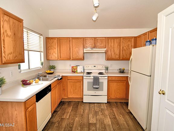 4 BEDROOM HOME! Built in 1999. New Carpet! New garage door opener. Professionally cleaned & ready for move in! Exterior re-paint scheduled to begin next week! Wilmot Vista. Super close to DMAF. EZ drive to Raytheon, Amazon. Schools, bus, shopping EZ!! Huge living rm/dining area. HIGH CEILINGS & great light. Unique corner window in front BR. Kitchen fully equipped w/appliances, pantry closet & high display niche. Wrought Iron on front door & slider to east facing back yard. 16ft long cov patio. All single story homes - no one looks into your yard. Per seller: 2016 Roof! Dual pane windows, gas heat/hot water, water softener & wired alarm system. Owner's BR has ample closets, cultured marble dual vanity. Concrete driveway w/outside overnight parking allowed! Easy going neighborhood & HOA.
