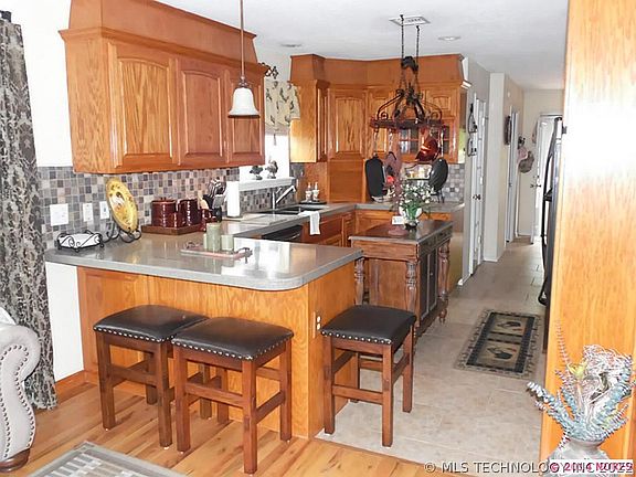 Well Cared for home. Beautiful Kitchen & Dining area. Large Living with Fireplace. View the Country side from full covered Front Porch or the Shady Back Deck. Shop w/ Living Quarters. Fenced & Cross Fenced.