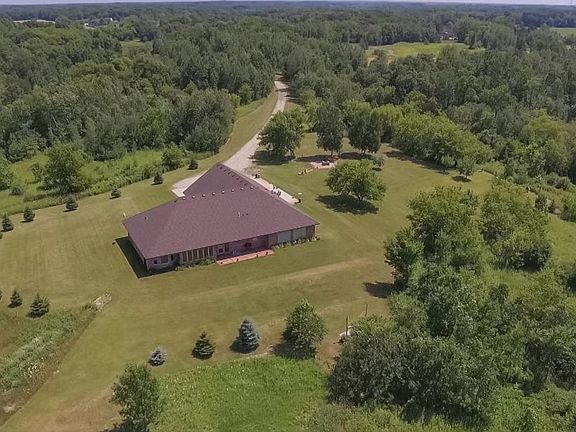 Beautiful one level brick and stone home on 40 wooded and rolling acres. Owner is the builder & lots of thought and love went into building this. Just to name a few: cement patio side, back and inside garage has geo thermal heat. Air central vac, vaulted ceilings w/a very open floor plan. Lots of plum & apple trees, wild life all around.