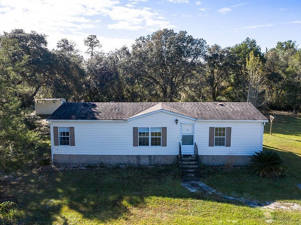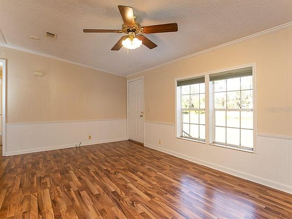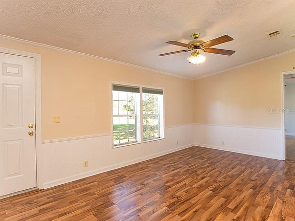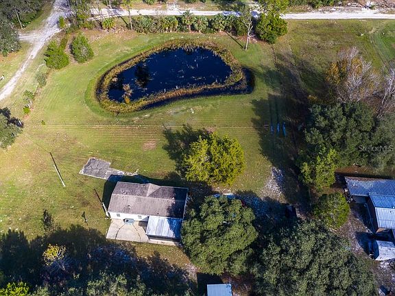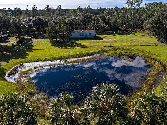 Nice 3 bedroom 2 bath home on a beautiful property. Backs up to forest land and has a pond in the front yard. Open floor plan. Kitchen has ample cabinets, pantry and small breakfast bar. Living and Dining area have wood laminet floors and decorative wainscoting. The Master Bedroom has a walk in closet and is carpeted. The Master Bath was updated in 2016 with a new vanity and shower. The other 2 bedrooms have carpet and ceiling fans. Interior laundry room is off the kitchen. Screened in back porch was done in 2016. Exterior shed with power and work bench. The property is completely fenced and has a solar powered gate with remotes for easy access. Roof was new in 2013 and A/C unit 2010. Easy access to Deland, Eustis and Mt.Dora. Call to see this property today!