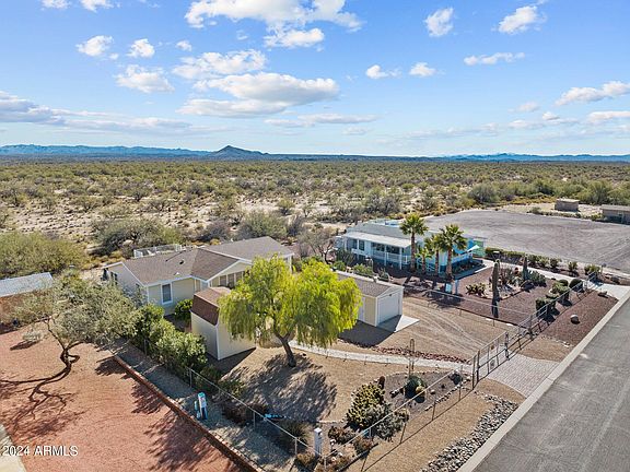 ABUTS BLM LAND! AMAZING VIEWS! 1 bedroom, 2nd room has a murphy bed perfect for guests. Enjoy hiking for miles! Access BLM lland within minutes. Fully fenced in property w/chain link & wire. 15' roll gate. RV parking w/full hookup. 28x12 sq ft. 1 car garage w/workshop & security light. Storage shed, currently used as storage & golf cart parking. Front & back covered porches with pull down shades. Open and split floorplan. Beautiful 1 bedroom, 2 bath + craft room. Nice size master bedroom w/walk-in closet and a lovely, upgraded spa feel master bath. Walk-in, custom tile shower & granite counter. Livingroom & diningroom. Lots of natural light.