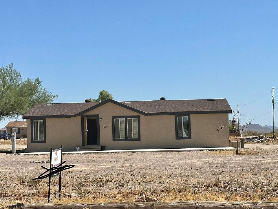 This is a nice 1.21 Acres Horse property, just missing the fence, the mobile home built in 2003 with 3 bedrooms and 2 baths, high ceilings, split floor plan, nice kitchen cabinets and a kitchen Island, with granite counter-tops, white washed cabinetry, large covered patio, AC unit only 3 Years old, Shared well with 3 owners registered, septic tank, no HOA and few trees planted...