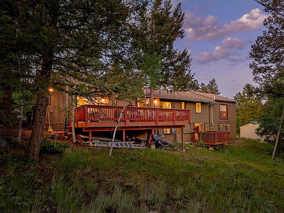 Beautiful ranch style home in an excellent location! This property is a mere 45 minute commute to Denver and has the feel of that mountain community you've been looking for. This home has been updated and maintained throughout including a complete remodel on the kitchen with granite countertops, custom cabinetry, a large island/eating space, and newer appliances with a gas range/oven. Entertaining in this home comes easy with the large great room that walks out onto your wood deck, complete with a mountain view. The basement is a walk out, and has another deck for the hot tub (newer), which is included in this sale. The master suite is large and boasts his and her matching walk in closets, and a 5 piece bathroom with a claw foot tub. Ample parking is available for your RV adjacent to the garage as well as your guests on the second driveway/parking area near the front porch. High speed century link internet available.