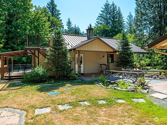 Lovely cabin in quiet, wilderness setting - your rare opportunity to own in Stillaguamish Country Club! Home has 1 beds, plus sleeping loft and guest house. 2 bath, kitchen w/newer appliances, plus spacious living, and office area. Propane stove & beautiful brick hearth in great room. Large windows overlook French Creek. Outdoors you'll enjoy 2 decks, large carport, and outbuildings for storage and RV parking. Low maintenance metal roof. Access to 95 acres of shared open space, walking trails, mountain views & French Creek/Stillaguamish riverfront. Annual dues cover water, garbage & on-site caretaker. Gated entrance, must be accompanied by Agent for access. CASH ONLY.