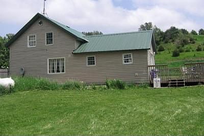 Located on one acre, 3 bedroom home has maintenance free siding, metal roof, great wrap around deck, and 2 car garage. Lots of potential - sold ''as is''.