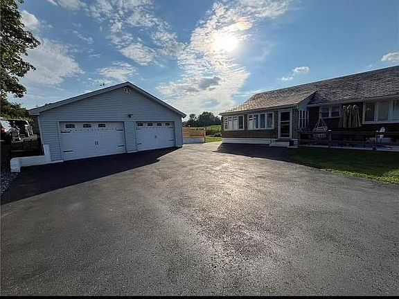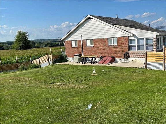 Brick ranch surrounded by corn fields features a fenced yard, fruit trees, patio, oversized 2 car garage and parking area for 12 cars, a two story custom built storage shed. The living room has a stone fireplace, large eat-in kitchen, 2 bedrooms and full bath on the first floor. The basement had a bedroom, full bath, laundry area and walkout entrance.