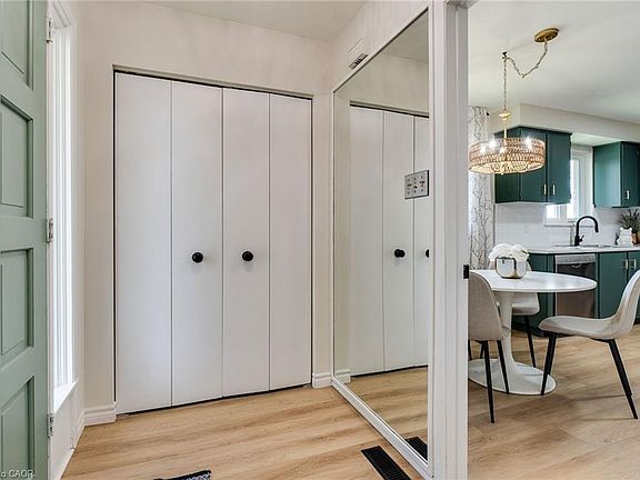 Welcome to this beautifully updated home, located in the highly sought-after Palmer community of Burlington. Proudly owned by the original owners, this property combines modern upgrades with timeless charm—perfect for families, downsizers, or multi-generational living. Step inside to a spacious, light-filled main floor featuring a combined living and dining area with new flooring, modern light fixtures, and fresh neutral paint throughout. The updated eat-in kitchen is a showstopper, boasting new countertops, classic white subway tile backsplash, on-trend green cabinetry with gold hardware, and stainless steel appliances. The main 4-piece bathroom is clean and stylishly updated. All three main-floor bedrooms are generous in size with new flooring, ample closet space, and large windows that let the sunlight pour in. Offering in-law suite potential, a separate side entrance leads to a massive finished basement with new flooring, pot lights, and a versatile open space—perfect for movie nights, playtime, or hosting guests. You'll also find a second updated 3-piece bathroom and two additional bedrooms with large windows and closets, making this a true 5-bedroom home. Step outside to a private, tree-lined backyard with plenty of room to relax or create your dream outdoor oasis. A double garage and double driveway offer ample parking and storage. All of this in a fantastic location—close to shopping, parks, top-rated schools, highway access, churches, and more. This is the ideal place to call home!