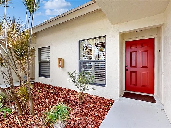Stunning waterfront villa in gated Pines West in Oakland Forest. Open Kitchen with vaulted ceilings (no popcorn) to dining area, living area, screened porch and open private pavered patio. Ceramic tile and laminate floors. walk-in closet with organizers. Overhead attic storage, all windows & doors are protected with accordion shutters. Laundry room with newer full size washer and dryer. HOA $580 per month includes Hi-speed internet & basic cable, reserves. Water runs aprox $40 per month. HOA says buyer must have 650+ credit score, 10% down. Includes hot tub/spa on patio. Furniture negotiable. The community has pool & gym on site.