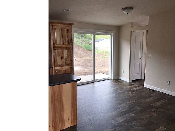 Welcome home! Energy Star Efficient 2020 Kit home with contemporary open floor plan. Attractive Origami ceilings, double pane vinyl windows. Some halfmoon windows for additional natural light. Kitchen with island and bar stool seating, 2 pantries. Knotty pine cabinets throughout. Dining area with sliding glass doors leading to fully fenced back yard. Large primary bedroom with bathroom and walk-in shower. 2 additional bedrooms and second full bathroom on opposite side of the home. Hall linen closet. Deck, nicely landscaped large flat lot fully fenced. Additional smaller deck adds possibility of adding a hot tub. UGS in front and back to hook-up to hose. Garden area in above ground planter boxes in back. Call for an appointment today.