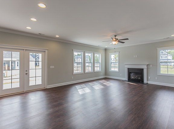 Beautiful new construction nestled on a lovely home site with mature shade trees. The Juniper will delight you with its open floor plan of 2236 sqft, 4BR/2.5BA, and fine features including custom wainscoting and coffered ceiling in the formal dining room. The well designed kitchen is sure to please boasting 42'' cabinets, granite countertops, tile backsplash, SS appliances, pantry, breakfast bar, and a spacious breakfast nook with patio door leading to the relaxing covered rear porch. Upstairs you'll find the tranquil master suite with garden tub, large tiled shower, double vanity, and walk-in closet, plus 3 additional bedrooms, a full bath, & laundry room. Additional features include luxury vinyl plank, carpet & ceramic tile, exterior stone accents, gas fireplace, recessed & pendant li