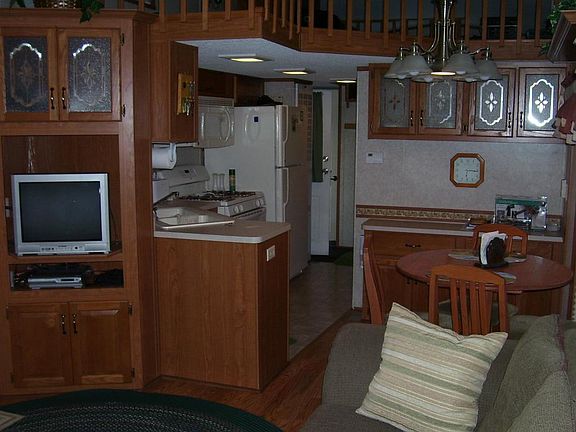 Great south facing Midge Lake lot with gentle slope, nice trees and hard sand frontage. Incudes a 385 sq. ft. 1 bedroom Quailridge park model and 1+ stall detached garage. Very well kept. Easy access. Low headroom storage and sleeping areas above main floor.