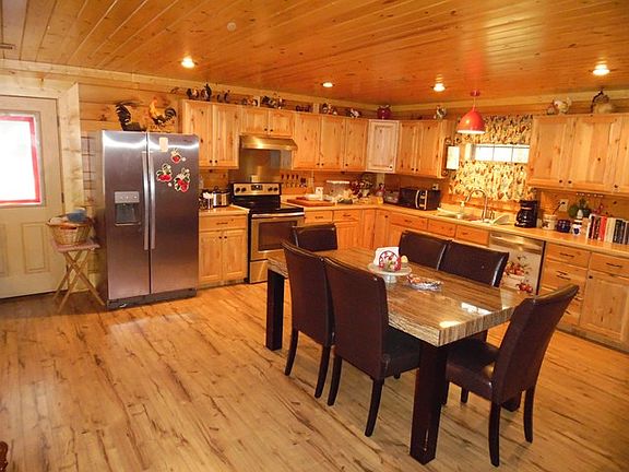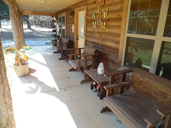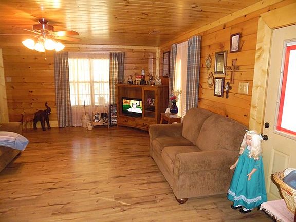 Two Homes with privacy, a 1200 SF Log Cabin, 1BR, 1BA, tongue and grove pine walls and ceiling, all Electric, nice front porch and a rear porch overlooking the pond, Metal roof! This is a very well kept cabin, seller Mom lives here, The other home is a Metal building house with open floor plan as you can see in the pictures. Walk-in Tiled Shower with 3 different shower heads! Granite top bathroom counter. Kitchen Island has ceramic tile, tounge & groove sides with storage. It is Double Insulated. Gas cook range, Both homes are Central H/A. 30x30 Shop, 10.9 ac survey will determine acreage.