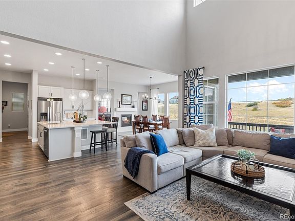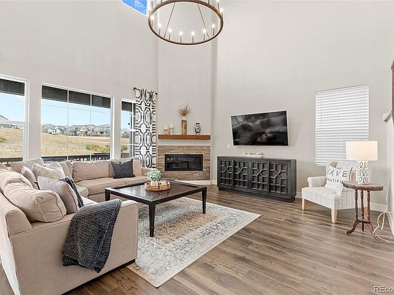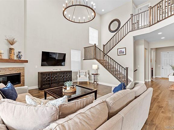 BEST PRICE IN ALL OF MACANTA WITH A FULL CUSTOM FINISHED BASEMENT!!!* CUSTOM MULTI-GEN FINISHED BASEMENT** Welcome Home To Over 5,000 Finished Square feet! Walking in you are greeted by wood flooring throughout, amazing natural light and those views! Backing to a dedicated greenbelt, this home affords both privacy and views of the beautiful Colorado landscape. The main floor is complete with a dedicated office, large great room open to the kitchen and dining areas, and a flex space currently utilized as a reading room. Be wowed by the cathedral ceilings in the great room, cozy up to one of two main floor gas fireplaces, spend time with friends and family gathered around the large kitchen island, or simply relax in the peaceful setting on your covered back deck. Speaking of the kitchen, the upgraded cabinetry with newer hardware, upgraded lighting fixtures, quartz counters, stainless appliances, ample storage and large pantry with built-in wood shelving will not disappoint. On the upper level you will find the spacious Primary suite, en suite bathroom, a large tub and separate shower, and huge walk-in closet! 3 additional secondary bedrooms, one with a full en suite bath, another shared bathroom and large laundry room with included hanging rack and shelving completes the space. The fully finished and custom designed basement is an entertainer's dream! Enjoy the built-in wet bar with wine fridge, large great room with plenty of space for games and lounging, custom shelving and storage cabinetry, a large bedroom with walk-in closet plus storage, and gorgeous 3/4 bath with custom tile and walk-in shower. This space could easily be converted to multi-generational living or lock-off rental with income potential! Don't miss the basement level covered patio and the expansive, custom back patio providing additional outdoor living space! Tasteful landscaping and a fully fenced yard complete your experience! This home is not to be missed!