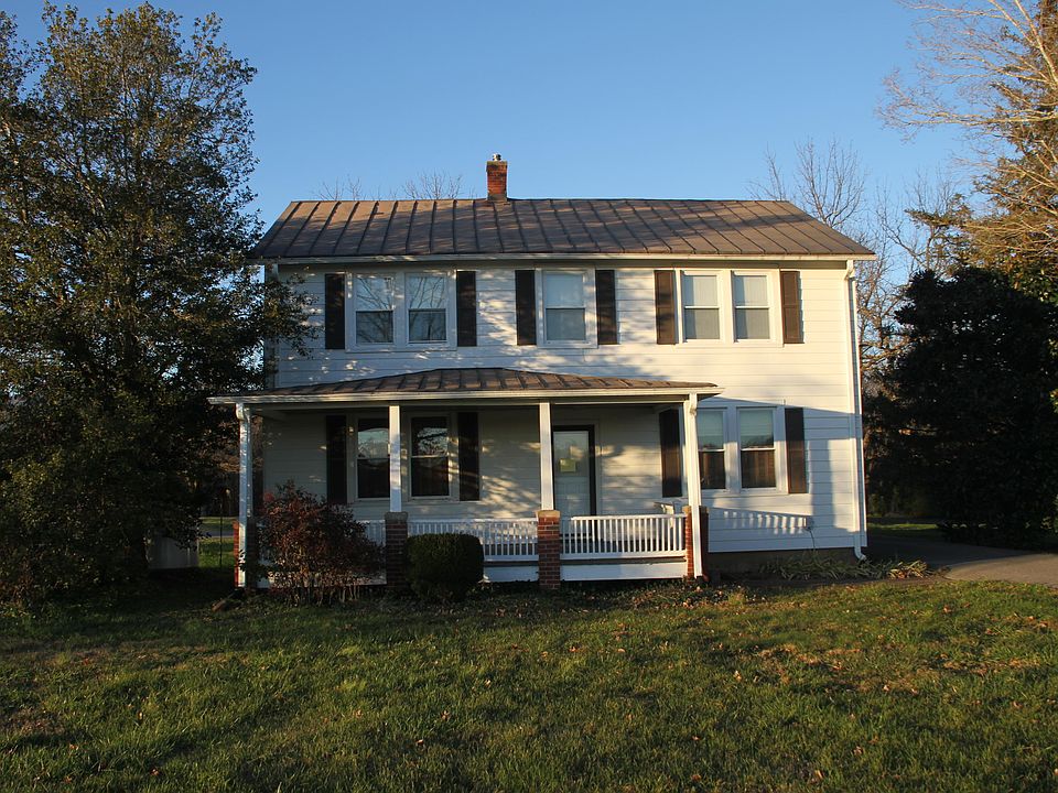 The quintessential 4 over 4 farmhouse in North Bedford County w gorgeous Sharp Top Mountain views! Very flat lot with outbuilding with electricity, two barns and a cedar shake playhouse. The home has two covered porches with mountain and sunset views. The living room has a vented gas log stove, wood floors, sconces, decorative columns that lead to formal dining with access to back covered porch. The eat in kitchen has cooking peninsula and built in hutch, access to back porch, mountain views. Office/den space with full bath. Replacement windows throughout. Main level windows have plantation shutters. The upstairs has 4 nice sized bedrooms and remodeled hall bath. Laundry on main level. Paved circular driveway. Large storage shed with electric makes great workshop.